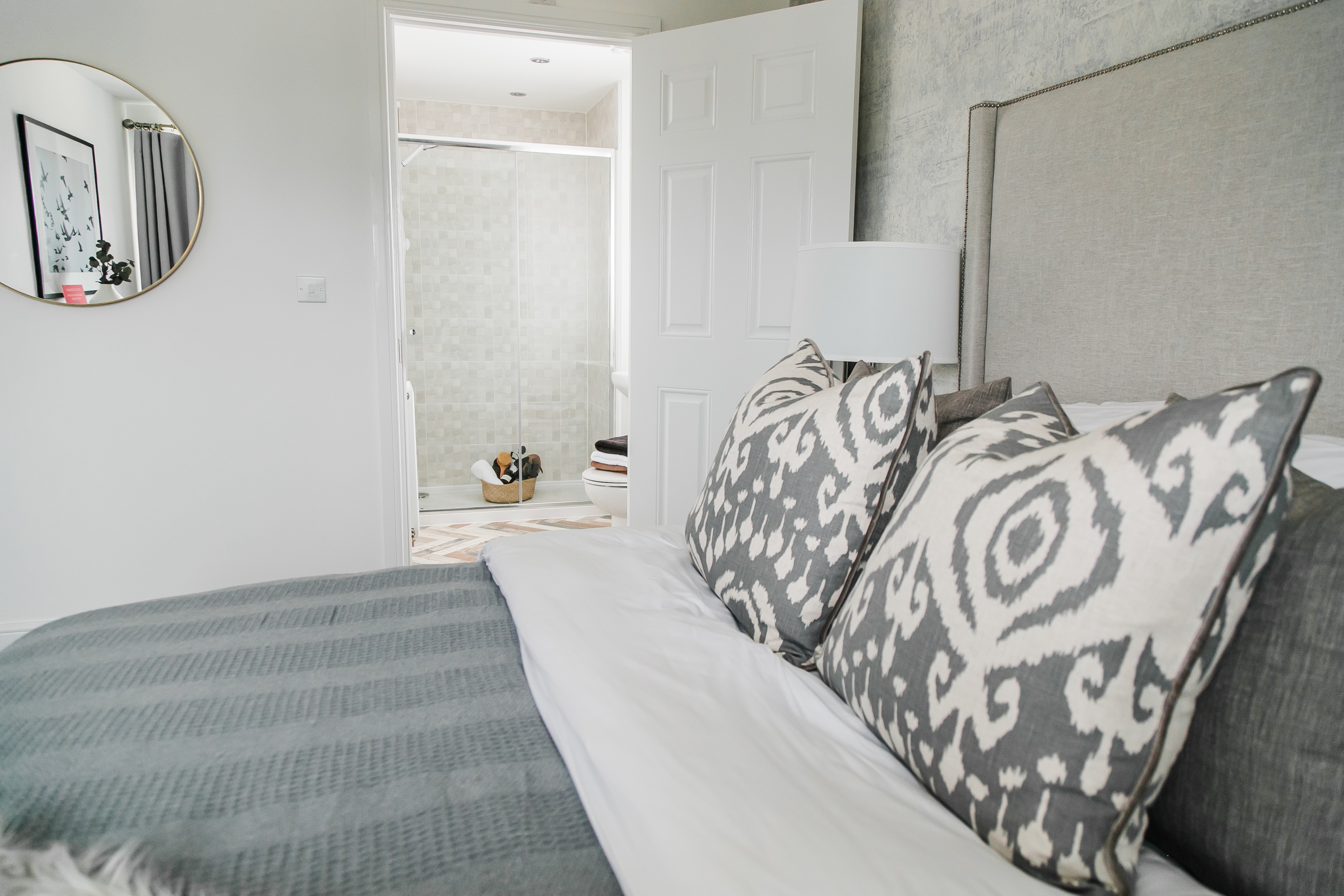 The front door of this home opens into the lounge and from there is the kitchen/dining room. The modern kitchen, has a built-in oven, hob and hood. The French doors leads out to the rear enclosed garden, which will be freshly turfed. The ground floor also boasts a downstairs WC.Â